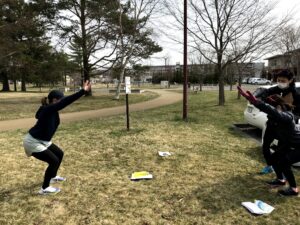 普段Runupの2人が走る前におこなっている動的(心拍数=体温を上げながらおこなう)ストレッチ